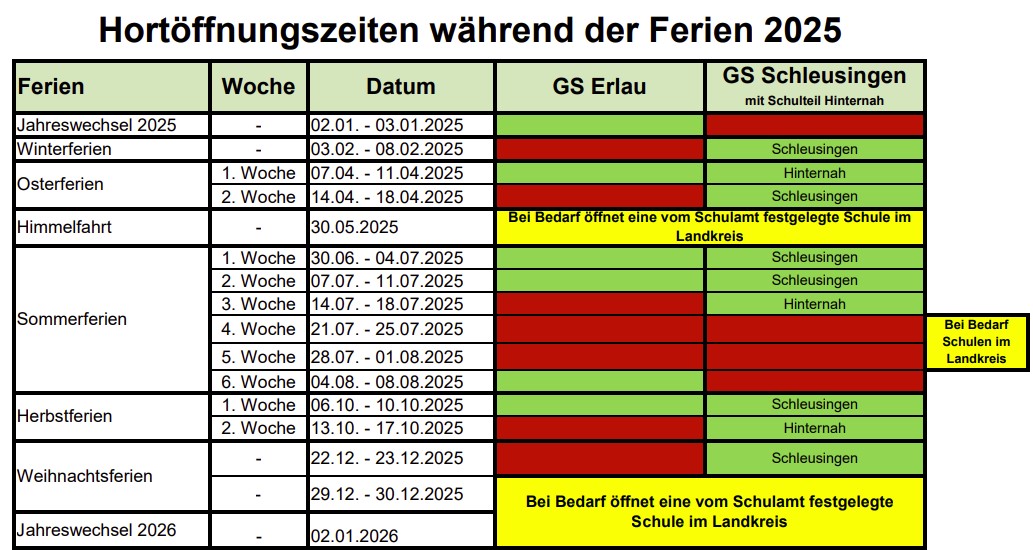 Früh- und Späthortzeiten in diesem Schuljahr: